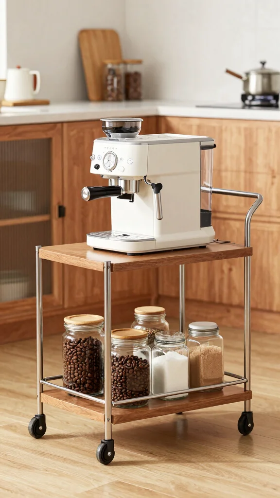 Utilize floating shelves or compact carts to maximize space while keeping your coffee essentials organized and stylish.