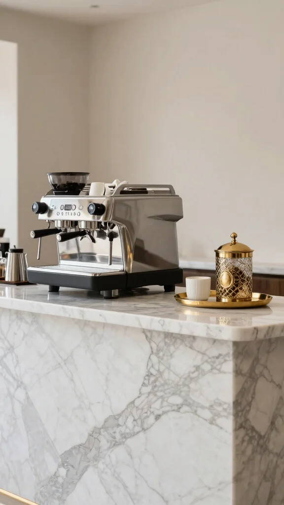 Adding marble surfaces to your coffee station instantly elevates the overall aesthetic, bringing a touch of luxury to your daily routine. Its smooth, sleek appearance can transform your coffee bar into a high-end experience, especially when paired with a modern coffee maker. The natural color variations in marble provide depth and sophistication, making it a stunning focal point in your kitchen.