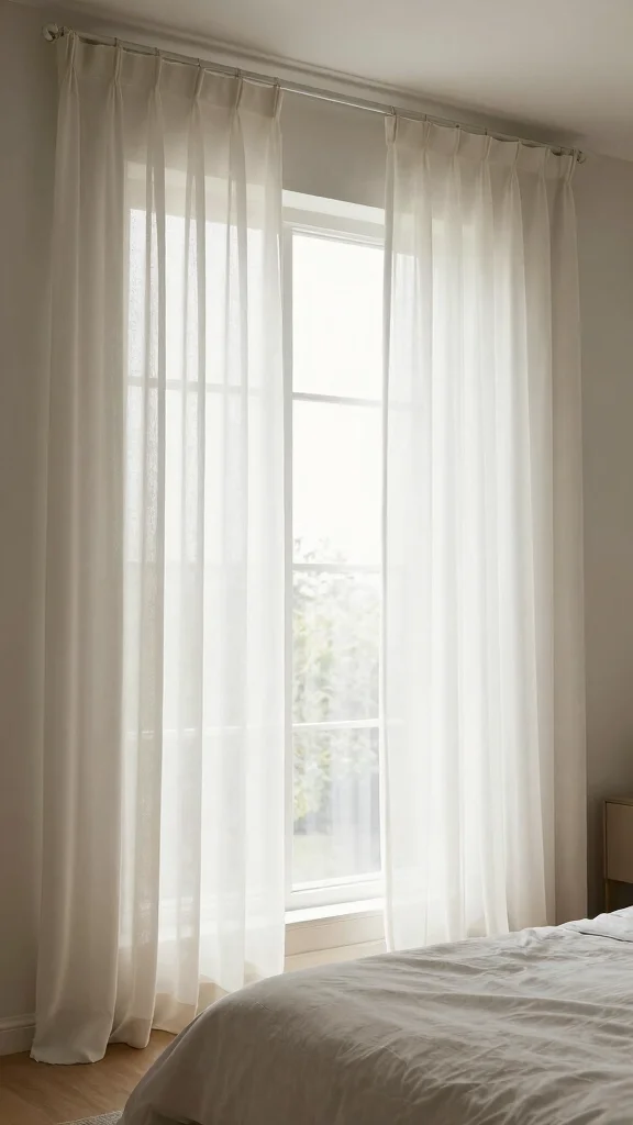 Measure your windows carefully before selecting sheer curtains. You’ll want the curtains to be long enough to reach the floor or just above the sill for that elegant look. For width, aim for two to three times the window width to ensure a full, luxurious drape when closed. Keep in mind that floor-to-ceiling curtains can create an illusion of higher ceilings, adding to the airy feel of your room.