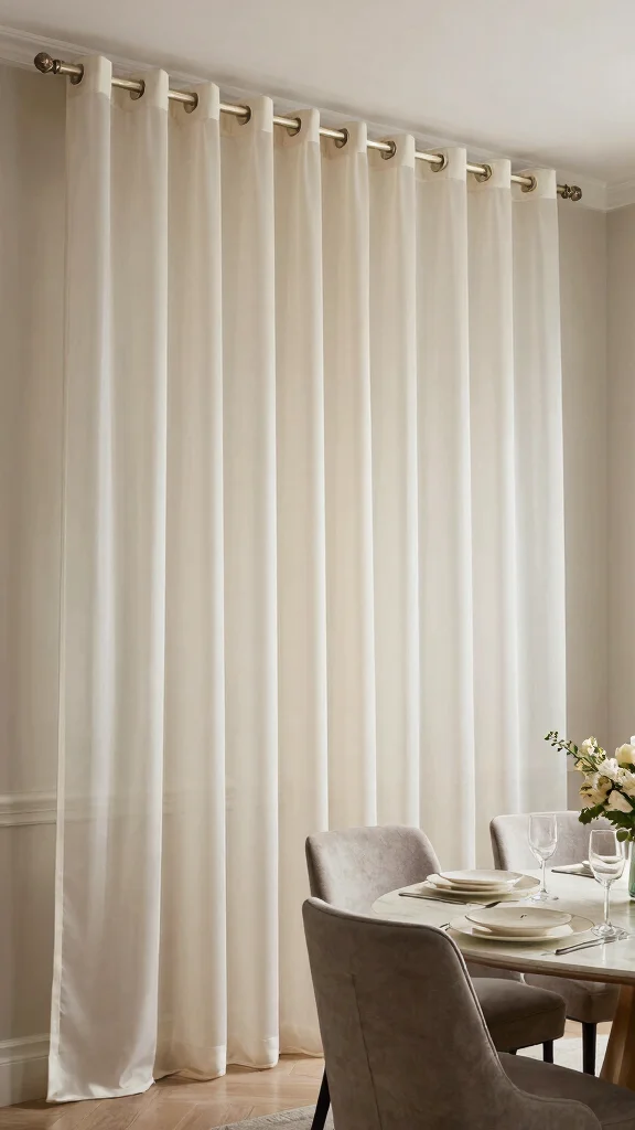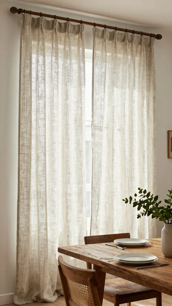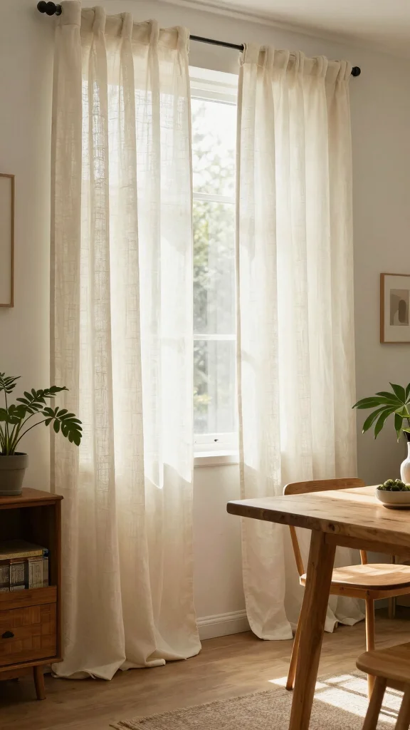 For best results, use a curtain rod that stretches beyond the window frame to enhance the height effect. This technique works wonders in living and dining areas, creating an illusion of spaciousness. Combining these drapes with heavier curtains can also add sophistication and depth to your design.
