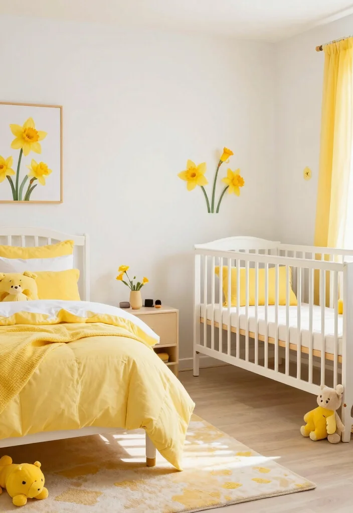 Integrating light daffodil yellows into your nursery can create a joyful environment that’s perfect for your happy little one.