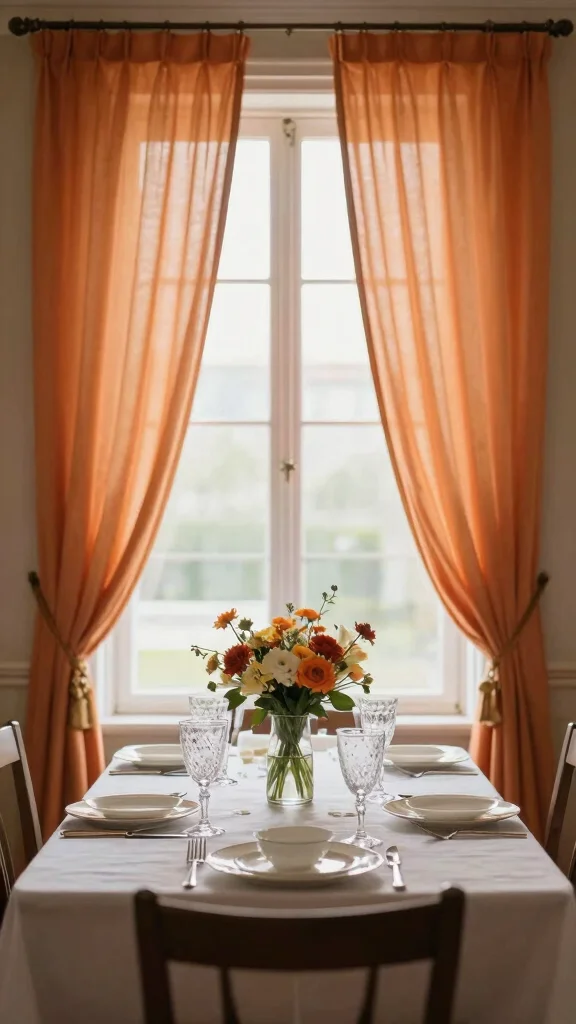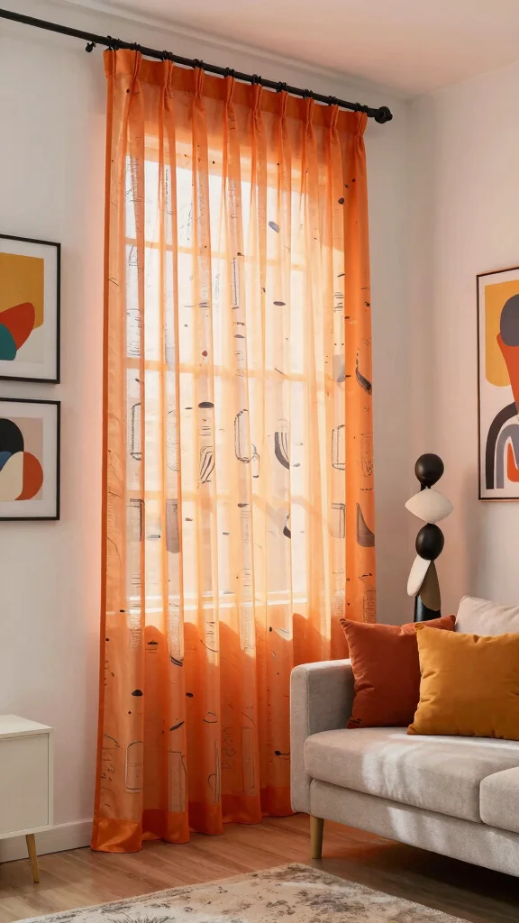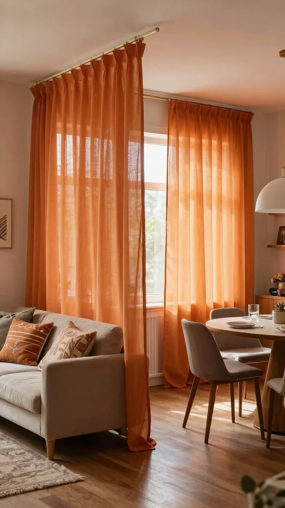 Utilize sheer fabrics in orange for window treatments to enhance natural light and create a warm, inviting glow.