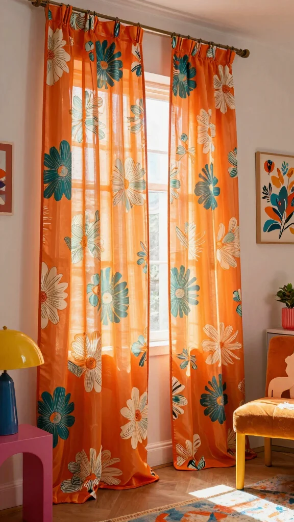 When selecting your curtains, consider how the orange shade fits into your overall color scheme. Shades like peach, rust, or burnt orange can create different moods. You may also want to look for patterns or textures that add interest. For a bohemian-inspired decor, consider mixing prints or choosing curtains that have fun designs that reflect your personality.