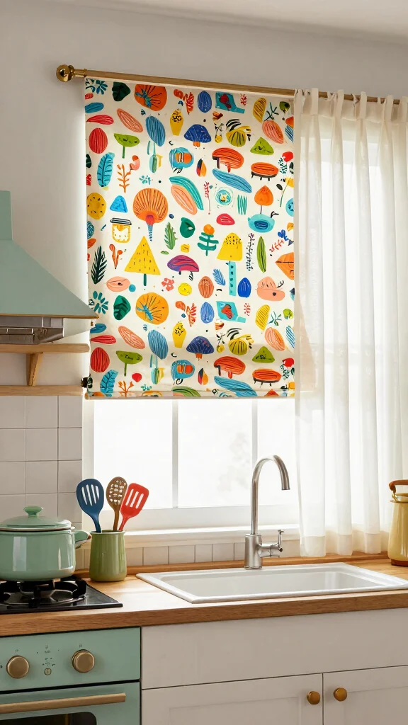 3. Bright Patterns: Printed Roller Blinds and Sheer Curtains