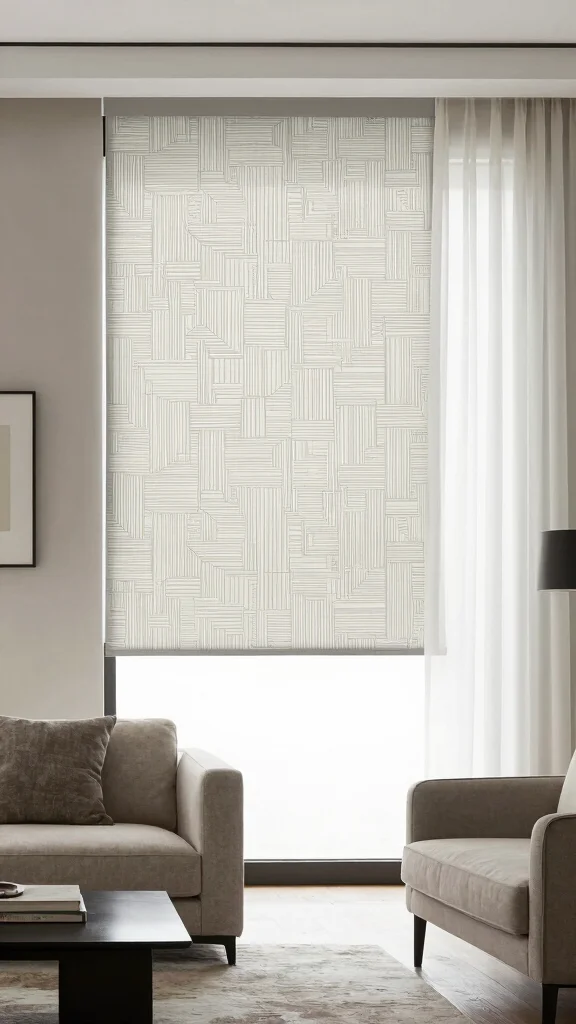 16. Geometric Patterns: Modern Roller Blinds with Soft Sheers
