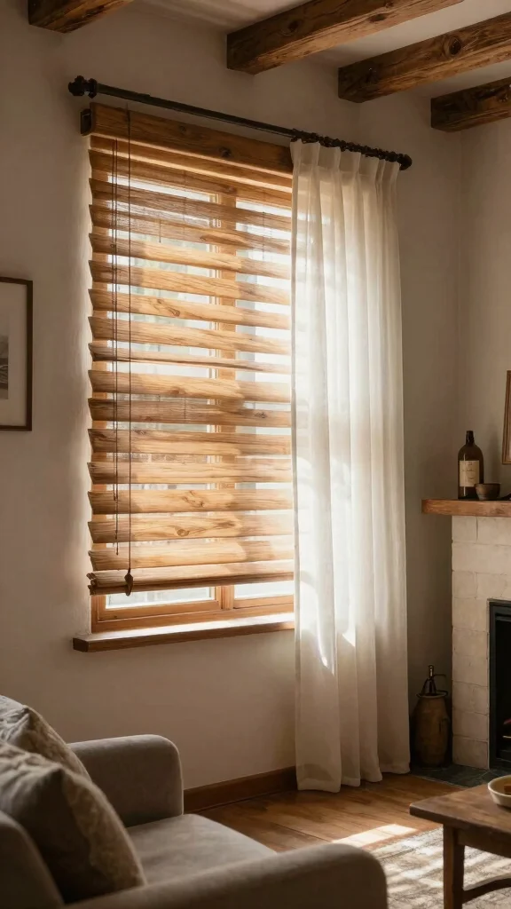 Combining wooden blinds with soft sheers creates an inviting atmosphere, making your home feel welcoming and snug.