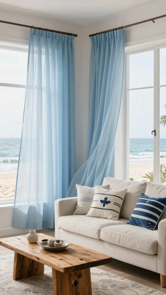 Pairing these sheers with natural elements like driftwood and jute enhances the coastal theme, creating a soothing ambiance.