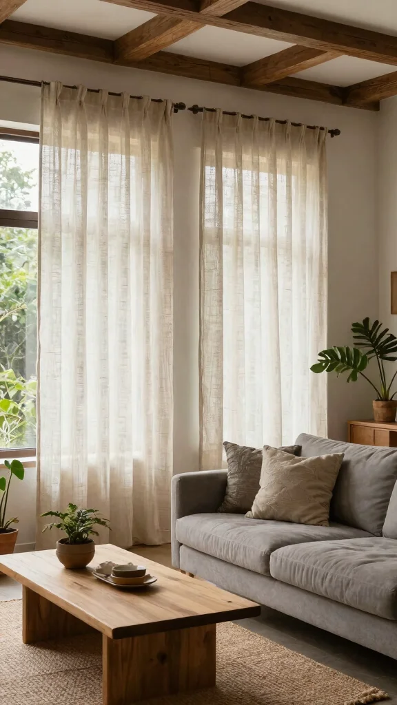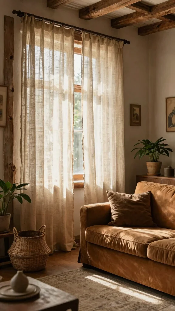 For a cozy, rustic atmosphere, consider sheer curtains made from natural fibers like jute or hemp. These textiles provide a soft texture that embodies earthy, organic decor. When styled with reclaimed wood furniture and stone accents, these sheers create a warm, inviting environment.