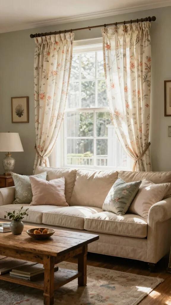 Vintage farmhouse sheer curtains bring a cozy charm to your living room, often featuring floral or checked patterns that evoke nostalgia while staying on-trend. These curtains beautifully blend comfort and style, creating a warm and welcoming space.