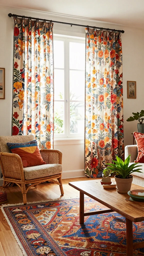 Bright curtains can serve as a focal point, harmonizing beautifully with neutral furniture to balance the vibrancy. This approach cultivates a joyful and inviting environment.