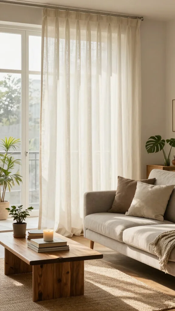 Pair these curtains with wooden elements and soft-toned fabrics to establish an earthy aesthetic. This combination creates an effortlessly chic atmosphere that feels inviting and fresh.