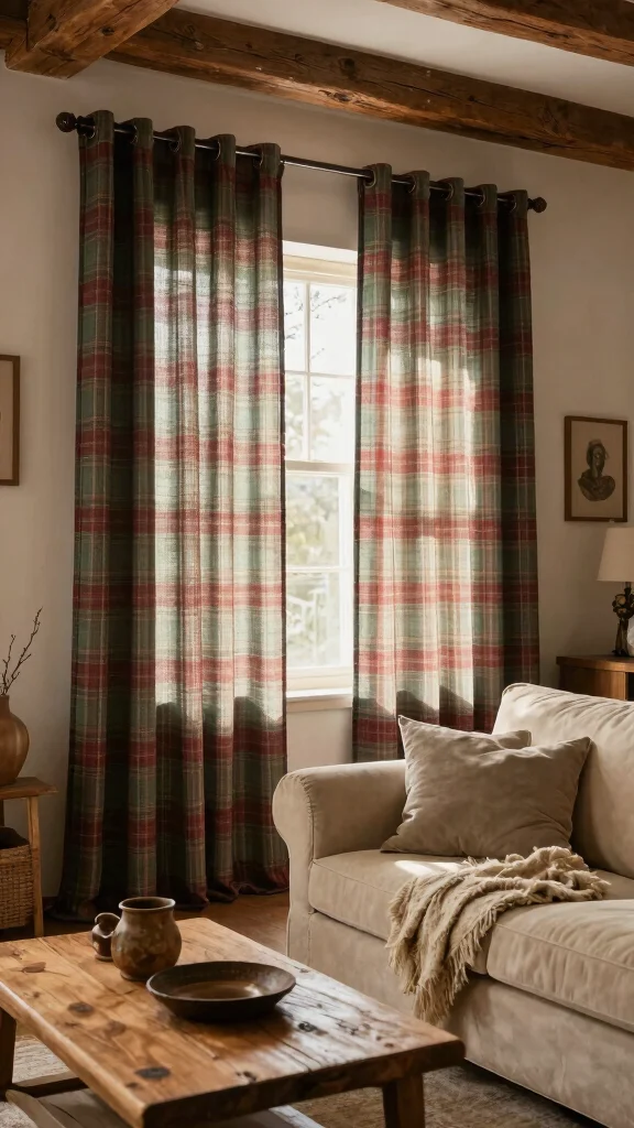 9. Rustic Charm with Plaid Sheers