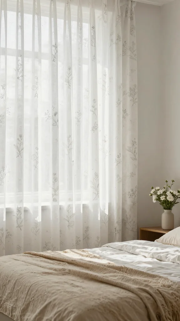 Tip: keep patterns simple and let the sheer fabric do the talking—less is more in bright room ideas.