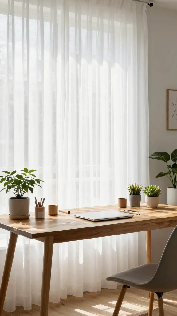 Sheer white curtains diffuse natural light and soften harsh sun, creating a bright, airy vibe in minimalist spaces. They offer privacy while preserving openness, so you can enjoy natural light decor and minimalist home decor at its best. For an eco-friendly touch, pair them with sustainable fabrics like linen or organic cotton, adding texture without compromising the clean look.