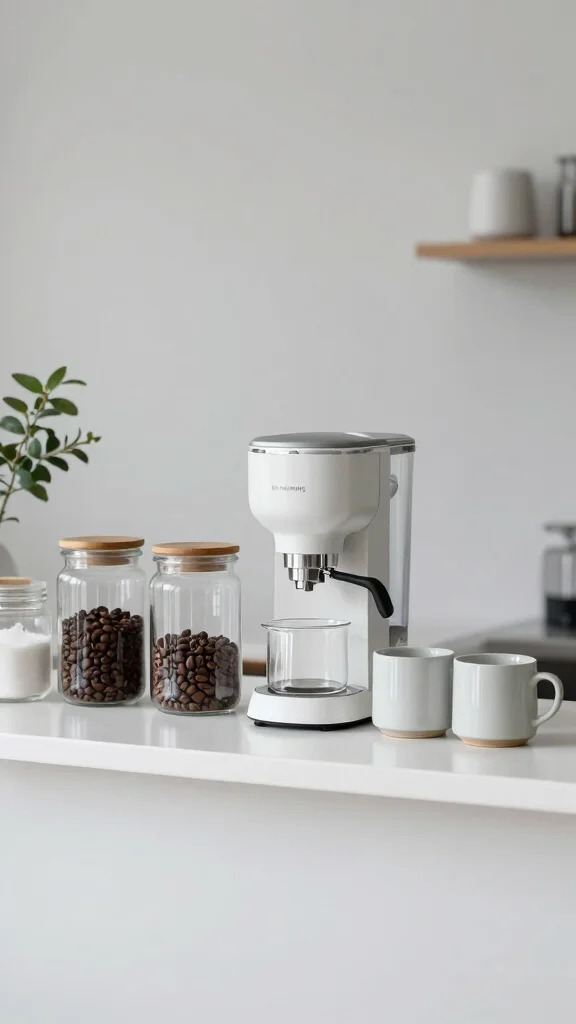 Use clear containers for coffee and sugar to keep the sleek aesthetic.