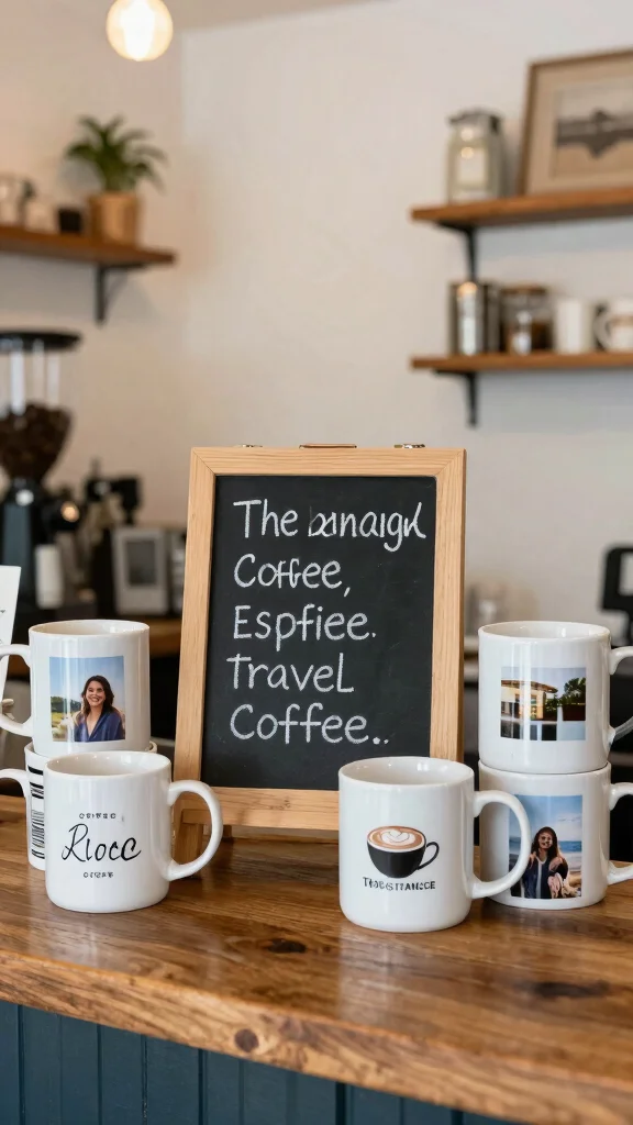 Display a collection of travel mugs from your favorite destinations.