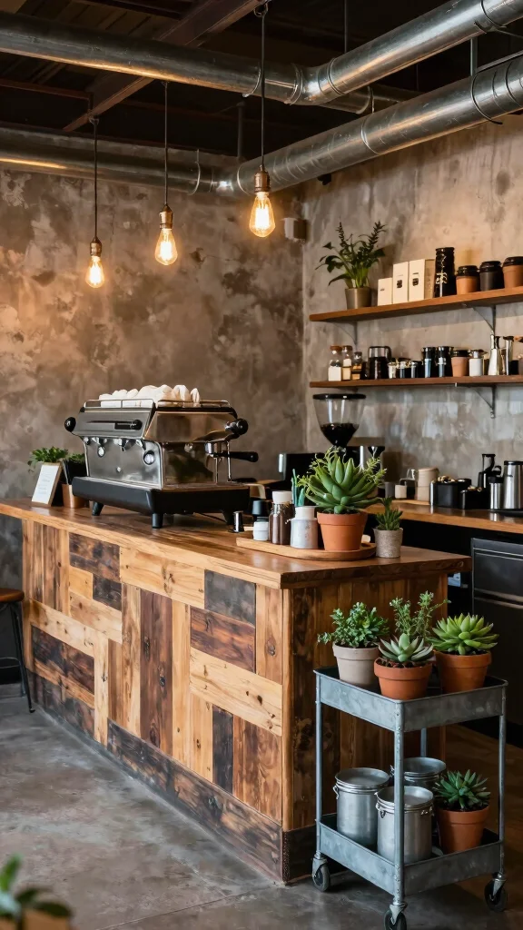 With an industrial setup, you enjoy a blend of modern design and rustic warmth, making it ideal for coffee enthusiasts.