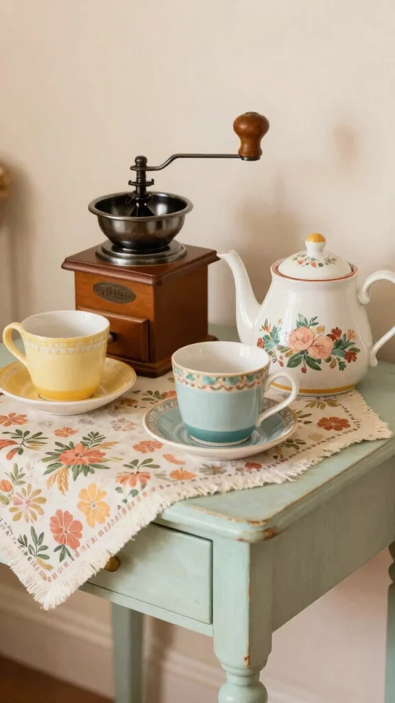 Incorporate unique items like an antique teapot.