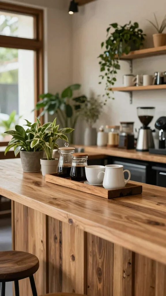 Fun fact: adding 3–5 small plants to your small coffee bar ideas can lift mood and calm in minutes—no fancy overhaul required. Pair natural wood finishes with organic textures for a serene, nature-inspired retreat in minutes each morning.