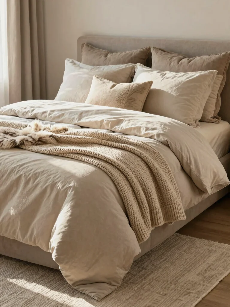 Creating a serene bedroom starts with layered textures in warm neutrals. This harmonious combination provides a soothing backdrop that feels inviting and cozy. Imagine soft cotton sheets beneath a luxurious linen duvet, topped with a chunky knit blanket for added warmth and comfort. The mix of materials not only pleases the eye but also feels incredible against your skin, making your bed a true retreat.