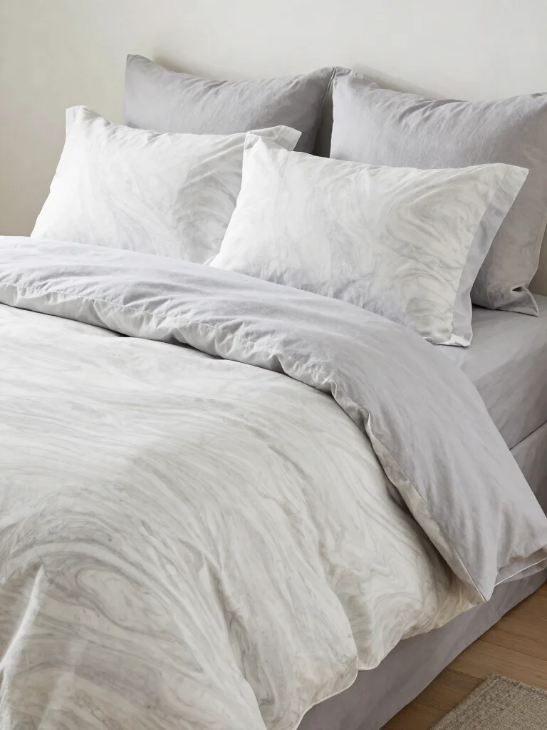 Pair marbled bedding with solid colors to keep the focus on the stunning patterns. Soft pillows featuring subtle textures, like velour or soft cotton, can enhance the calming effect of your bedding. This design trend aligns with the desire for tranquility in home decor, inviting a peaceful vibe into your space.