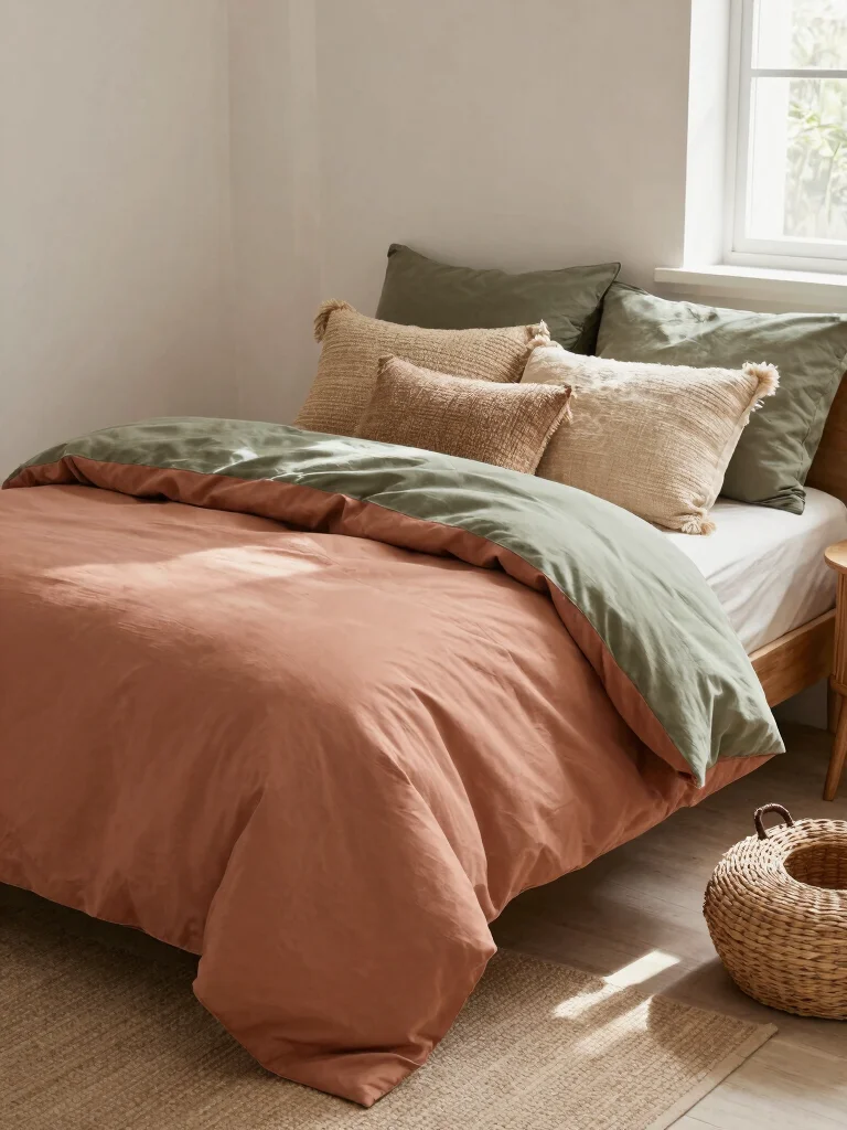 – Layer a soft linen duvet with cotton sheets in complementary earthy shades.