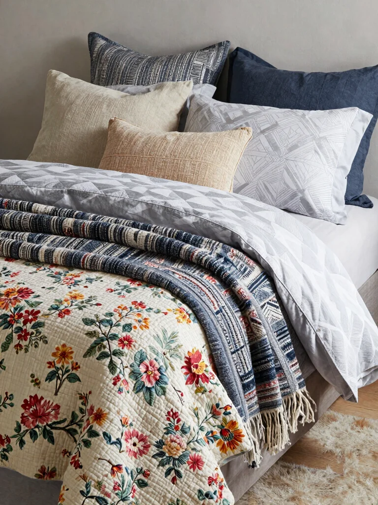 Dare to mix and match different bedding styles for a uniquely curated look! By blending bohemian, modern, and vintage pieces, you create a personalized space that reflects your individual taste. Try pairing a vintage floral quilt with sleek geometric sheets and a boho-chic throw blanket for a delightful contrast.