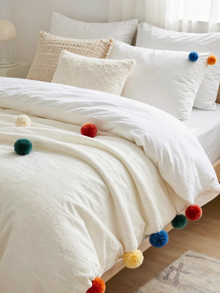 Sprinkle some whimsy into your bedding with playful pom-pom accents! These delightful details can make your bedding feel fun and cozy all at once. Whether adorning the edges of a throw blanket or enhancing decorative pillows, pom-poms add a unique touch that elevates your space.
