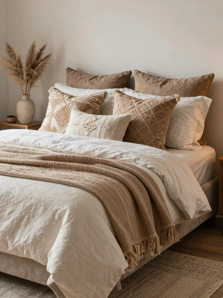 With these 19 design ideas, you’re well on your way to creating a luxurious bohemian space that feels uniquely yours. Don’t forget to play around with textures, colors, and patterns to make your bedding arrangement as inviting as possible!