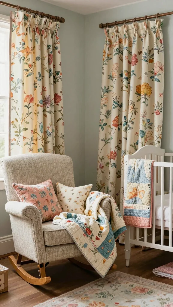 Sourcing or creating vintage quilts not only supports craftsmanship but also adds a personal touch to your decor. These quilts can serve as wall hangings, play mats, or cozy crib covers, enriching the room with texture and color. Mixing different prints can create a lively patchwork effect that feels inviting.