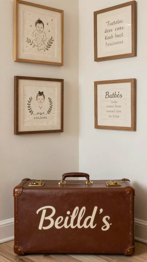 Consider using vintage suitcases for storage, adding your child’s name or initials for a sentimental touch. This practical storage solution also becomes a cherished keepsake. Additionally, creating custom wall art that features your baby’s birth details using vintage frames and fabrics can make the nursery feel special and filled with love.