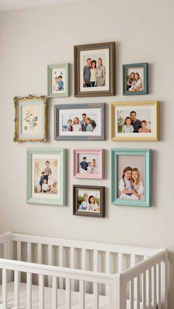 Creating DIY displays with vintage frames adds personal flair to your nursery.