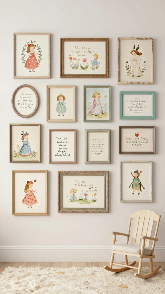 Sourcing classic illustrations or framing pages from old books can create captivating decor that entertains your baby as they grow. Display these artworks at eye level for maximum engagement, turning decor into a delightful learning tool. Enhancing your space with a gallery wall of framed art and quotes from beloved rhymes adds an artistic touch.