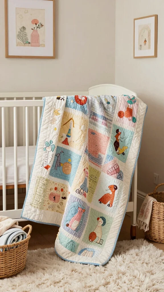 Handmade quilts and textiles bring a sense of warmth and comfort to any nursery.