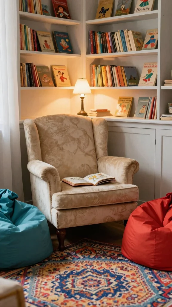 – Incorporate soft cushions and cozy throws for snuggling during reading time.