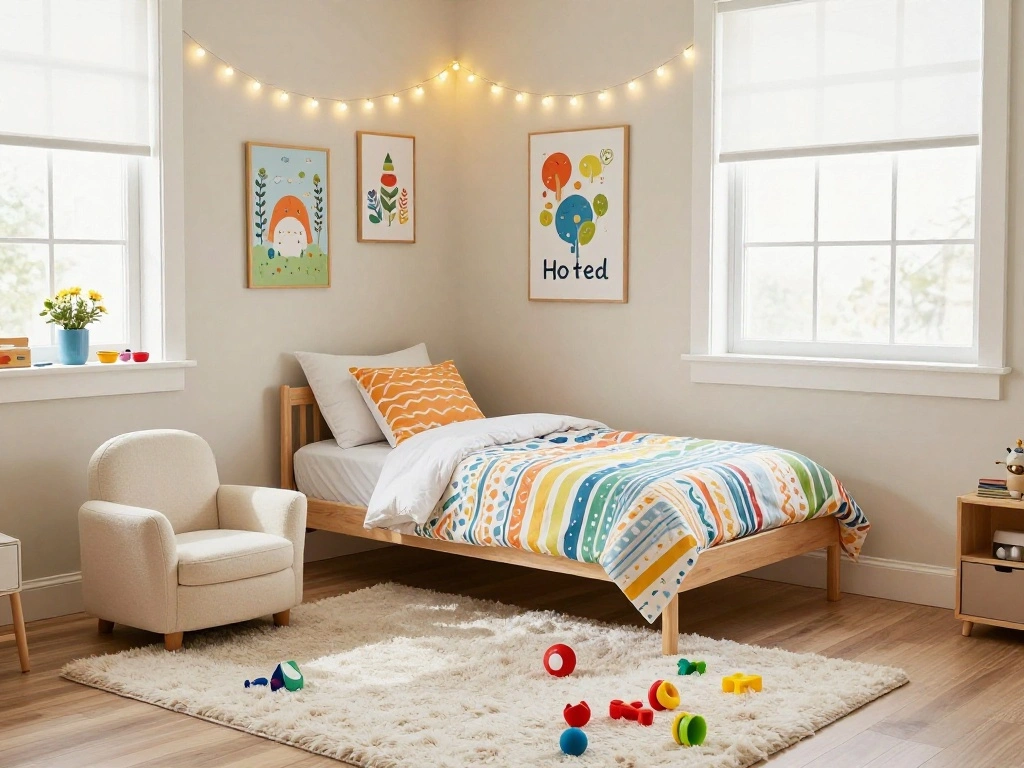 Additionally, consider the layout and functionality of the space. Create zones for different activities, like a reading nook with comfy pillows, a play area with toys, and a sleeping area that feels cozy. This division can help your child understand that their room serves multiple purposes, enhancing their sense of ownership.