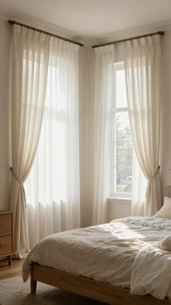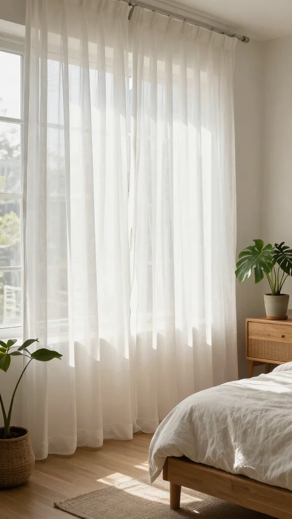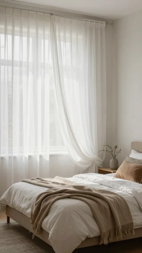 Try layering with a slim bamboo blind or a soft linen shade so you keep the light‑diffusing effect of white sheer curtains bedroom without losing privacy.