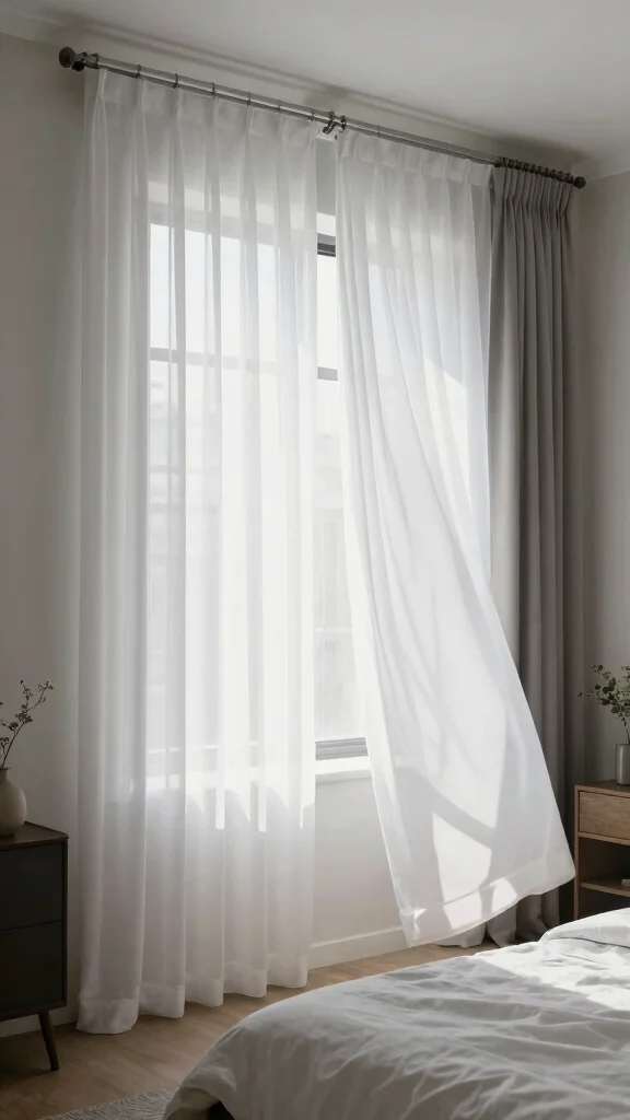 Combine white sheer curtains with blackout curtains for enhanced light control and a cozy sleep environment.