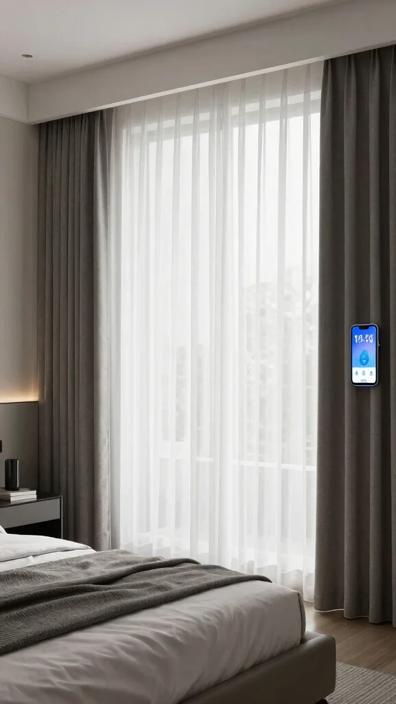 Incorporating smart home features into your sheer curtains can enhance your bedroom experience significantly. Consider utilizing electric or motorized curtain rods that allow you to control your curtains with a remote or smartphone app, making adjustments effortless. This convenience allows you to optimize light and privacy levels without leaving your bed, fostering a comfortable environment.