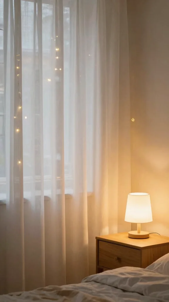Incorporate soft lighting to complement your sheer curtains, creating a tranquil and inviting atmosphere.