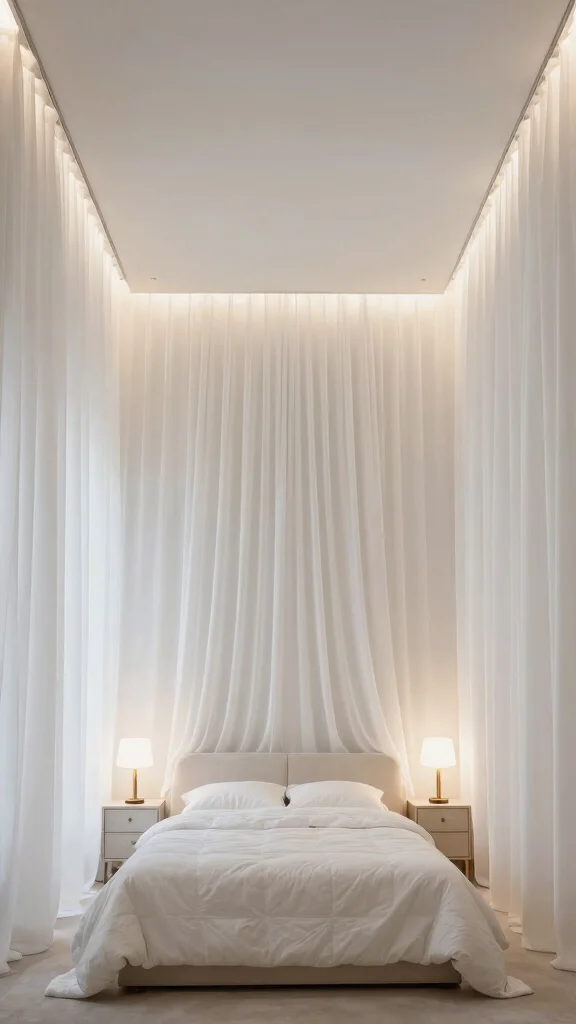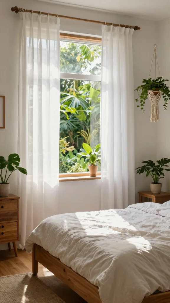 Pro tip: In your white sheer curtains bedroom, install a ceiling-mounted rod to raise the curtains and instantly create taller, calmer vibes. Pair them with light walls for an airy mood, and enjoy a dramatic, soft drape every day.