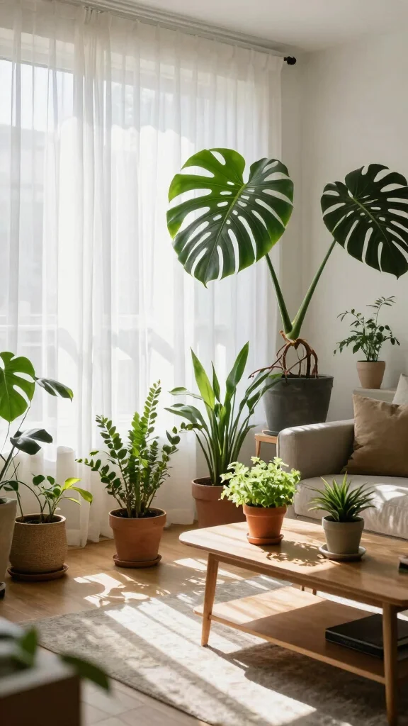Position your plants where they can receive natural light filtered through the sheer curtains, allowing for beautiful interactions of light and shadow.