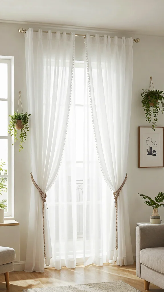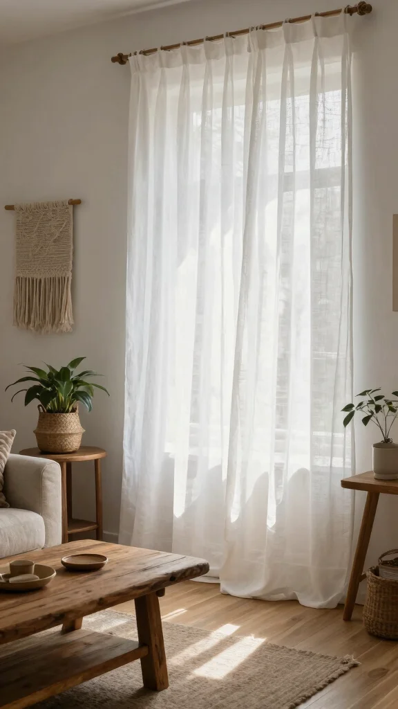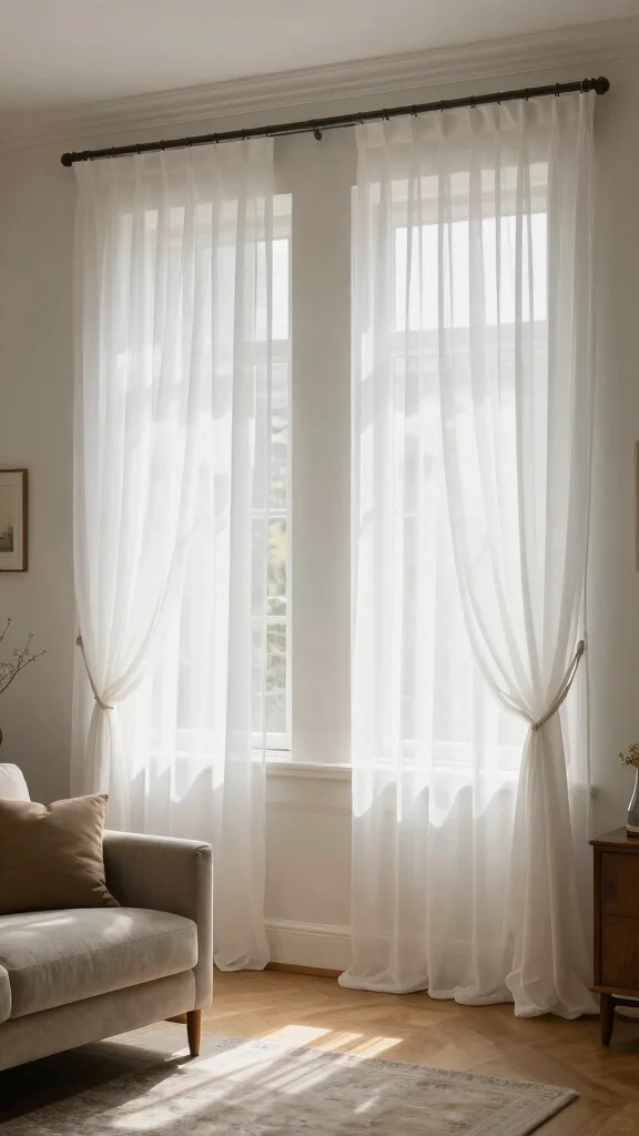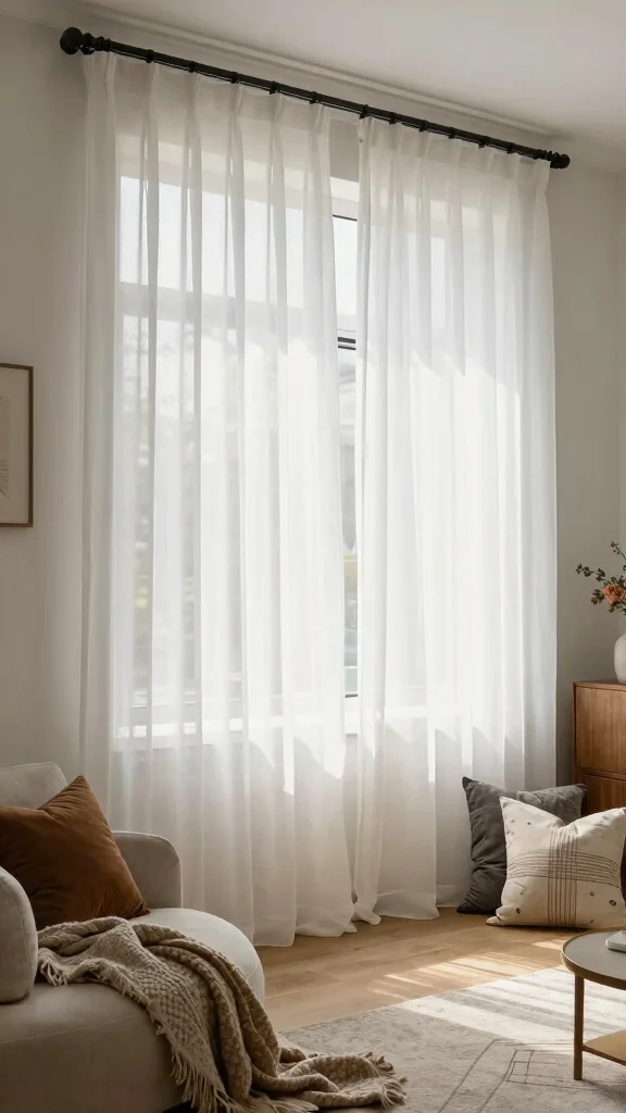 Additionally, lightweight accessories like hanging plants or artwork nearby can create a layered effect, enriching the space without overshadowing the elegance of the sheer curtains.