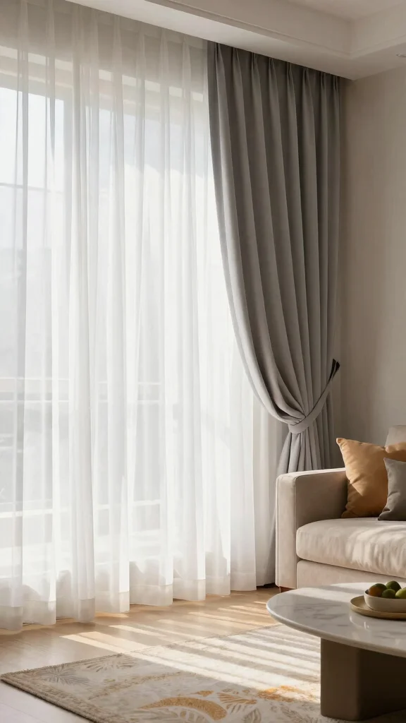 Layering sheer curtains can effortlessly add depth and character to your living room. By combining different textures or colors, you create a dynamic visual experience that captures attention. Start with a base of white sheer curtains and layer heavier drapes in a soft gray or muted pastel to achieve a beautiful contrast.