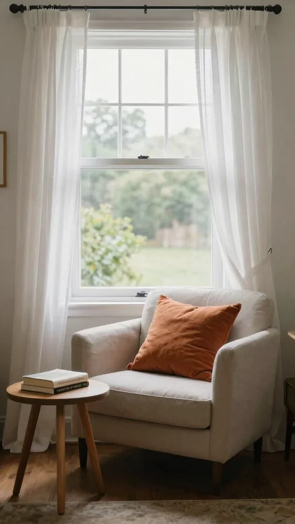 Fill your cozy corner with plush cushions, a soft throw blanket, and perhaps a bookshelf for the ultimate reading retreat. Layering sheer curtains with heavier drapes can further boost the coziness while allowing light control.