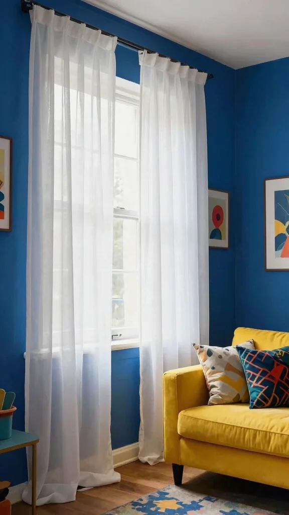 Consider using bold furniture or accessories in shades like emerald green or navy blue to draw attention to the curtains. The contrast between airy white fabric and deep colors creates a stunning visual effect, making your space feel dynamic and harmonious.