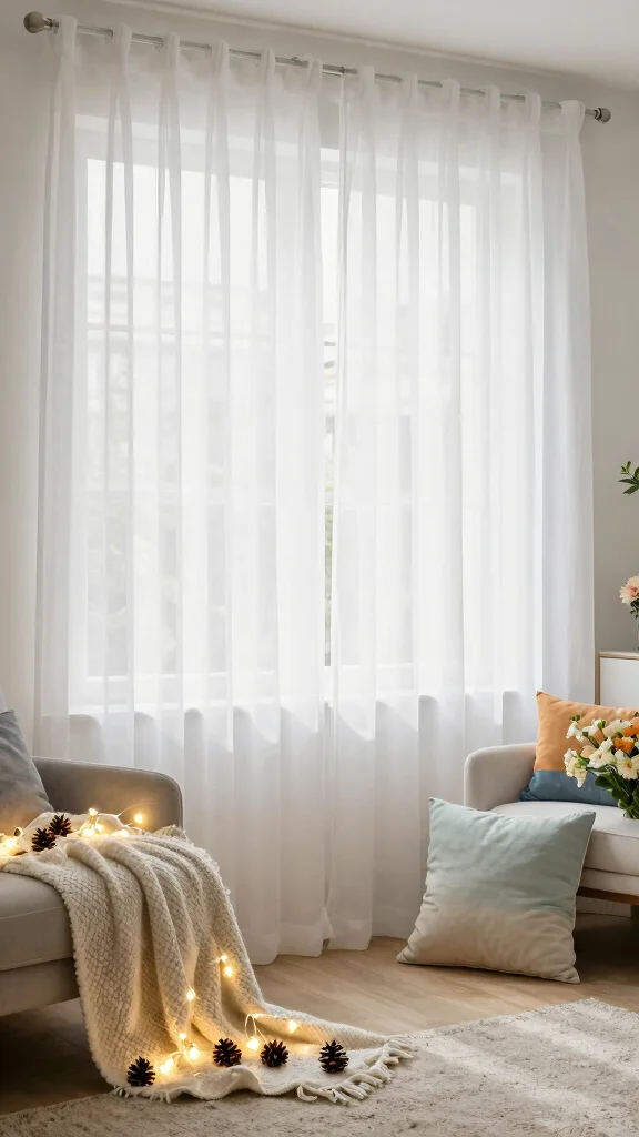 In winter, add warm throw blankets and festive decorations that contrast with the airy feel of the sheer fabric. In summer, surround the curtains with light and colorful accessories, such as beach-inspired decor or vibrant blooms.