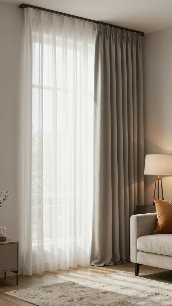 Select drapes in colors that complement the sheer fabric, allowing for beautiful contrasts when the drapes are closed and letting the sheers shimmer when drawn back. This technique is particularly effective in living rooms and bedrooms, where varying textures can create a more inviting ambiance.
