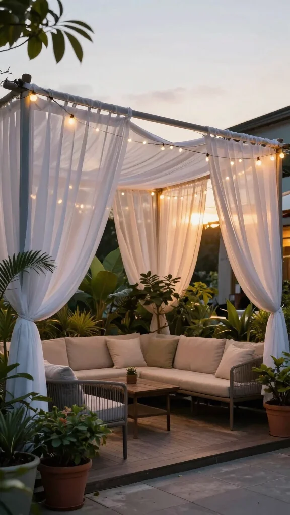 Opt for outdoor-safe sheer materials that resist moisture and fading, ensuring durability while enhancing your outdoor aesthetic. Complement the curtains with comfortable outdoor furniture and accent pieces like potted plants or string lights to elevate the vibe even further.
