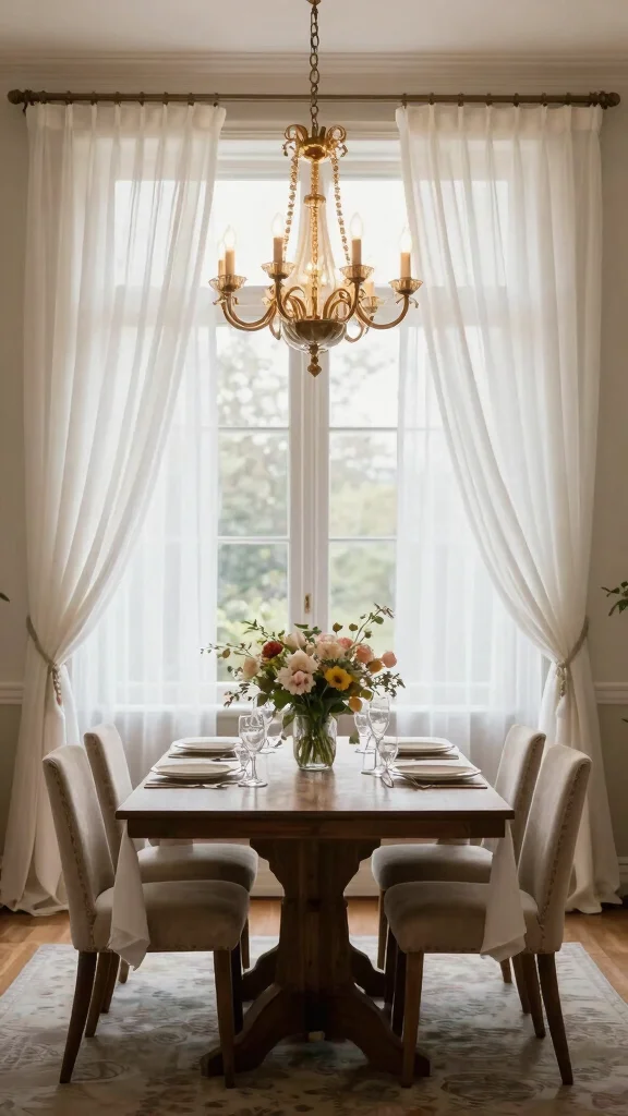 When styling your dining area, pair the sheer curtains with striking elements like a beautiful table setting or a statement chandelier. The sheer fabric diffuses light beautifully, creating a warm glow that enhances the dining experience. For a more dramatic touch, layer sheer curtains with heavier drapes or use them alone for a light, airy feel.